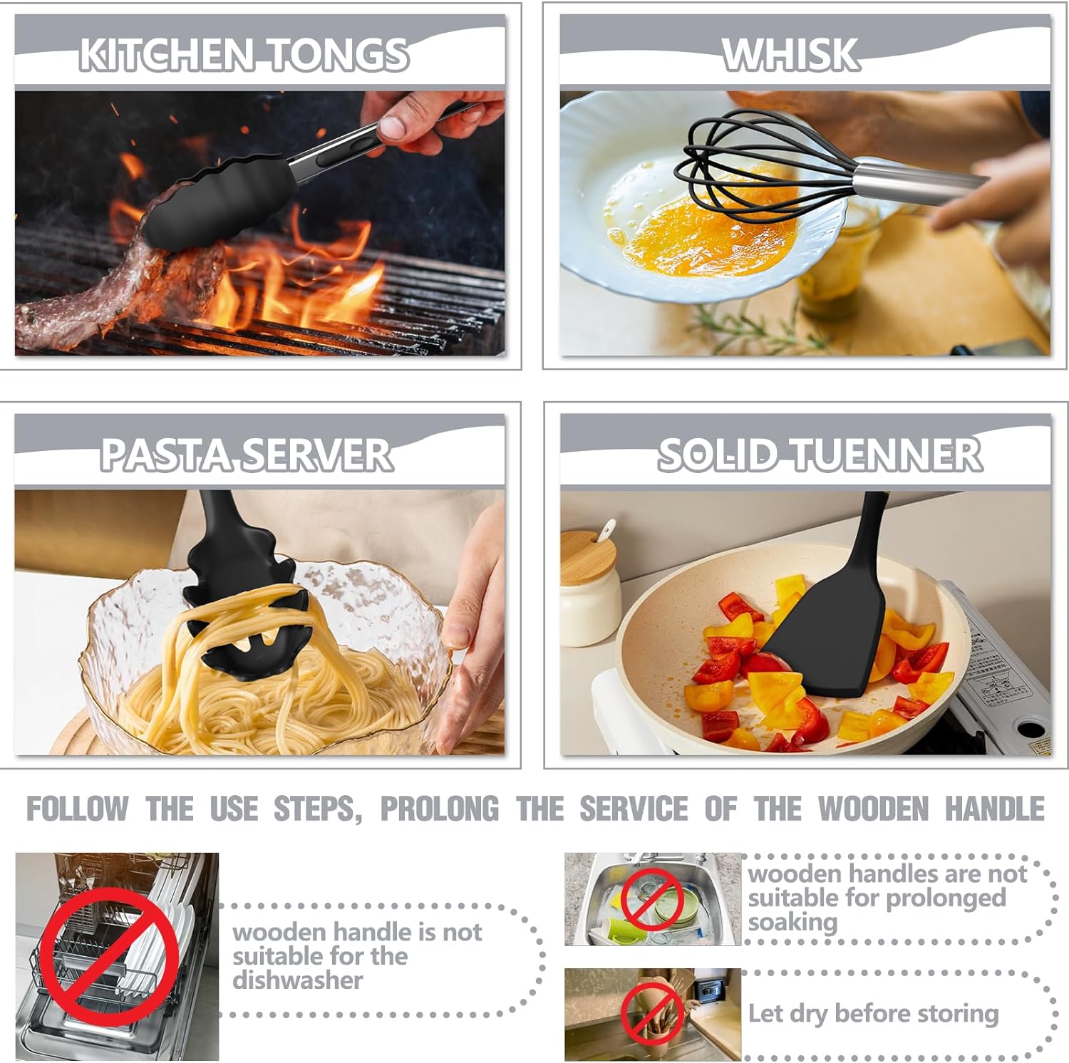 - Heat-Resistant, Non-Melting Soft Silicone: Each utensil is heat-resistant up to an impressive 446°F, ensuring they won’t melt or warp even under extreme temperatures. The soft silicone is gentle on non-stick cookware, preserving your expensive pans.