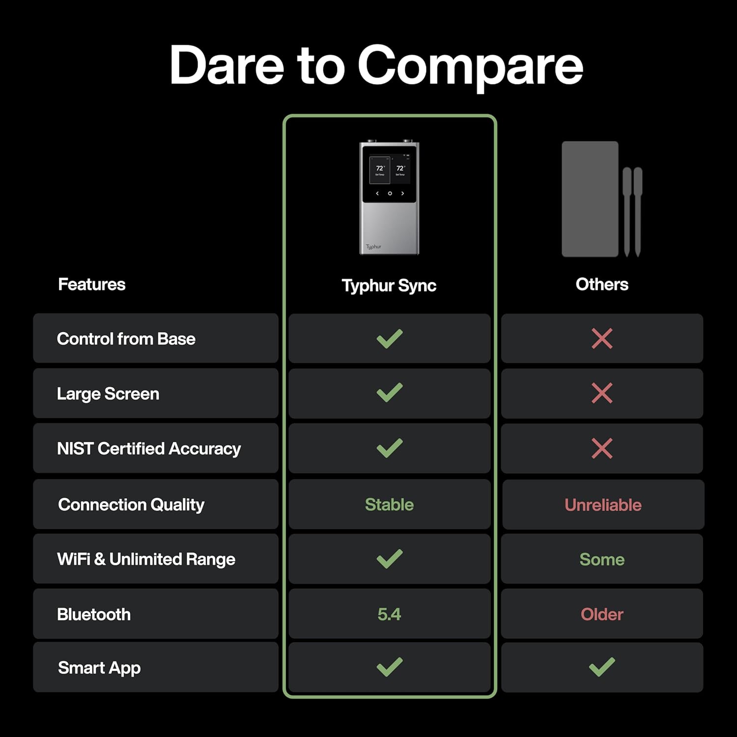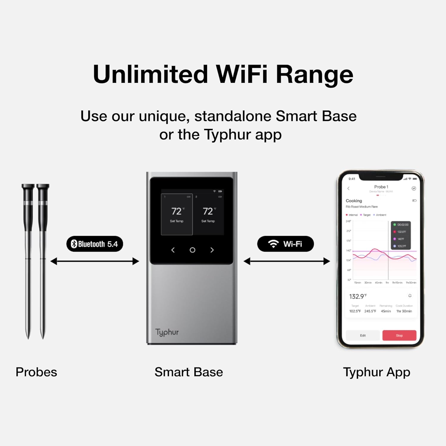 Elevate your cooking experience with the Typhur Sync Wireless Meat Thermometer, rated as the "best high-end meat thermometer" by TIME and recommended by prestigious platforms such as USA Today, Bon Appetit, CNET, and America’s Test Kitchen. This state-of-the-art thermometer features Bluetooth 5.4 technology, ensuring a stable and reliable connection with extended transmission distance, faster speed, and an enhanced ability to penetrate obstacles. Perfect for baking, barbecuing, or grilling, this device empowers you to cook with confidence.