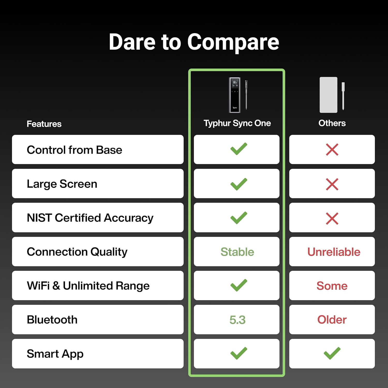 Introducing the Typhur Sync Wireless Meat Thermometer, the ultimate tool for cooking enthusiasts seeking precision and reliability. With cutting-edge Bluetooth 5.3 technology, this digital thermometer offers an extended transmission range, faster speeds, and improved obstacle penetration, ensuring a stable connection whether you’re baking, barbecuing, or grilling.