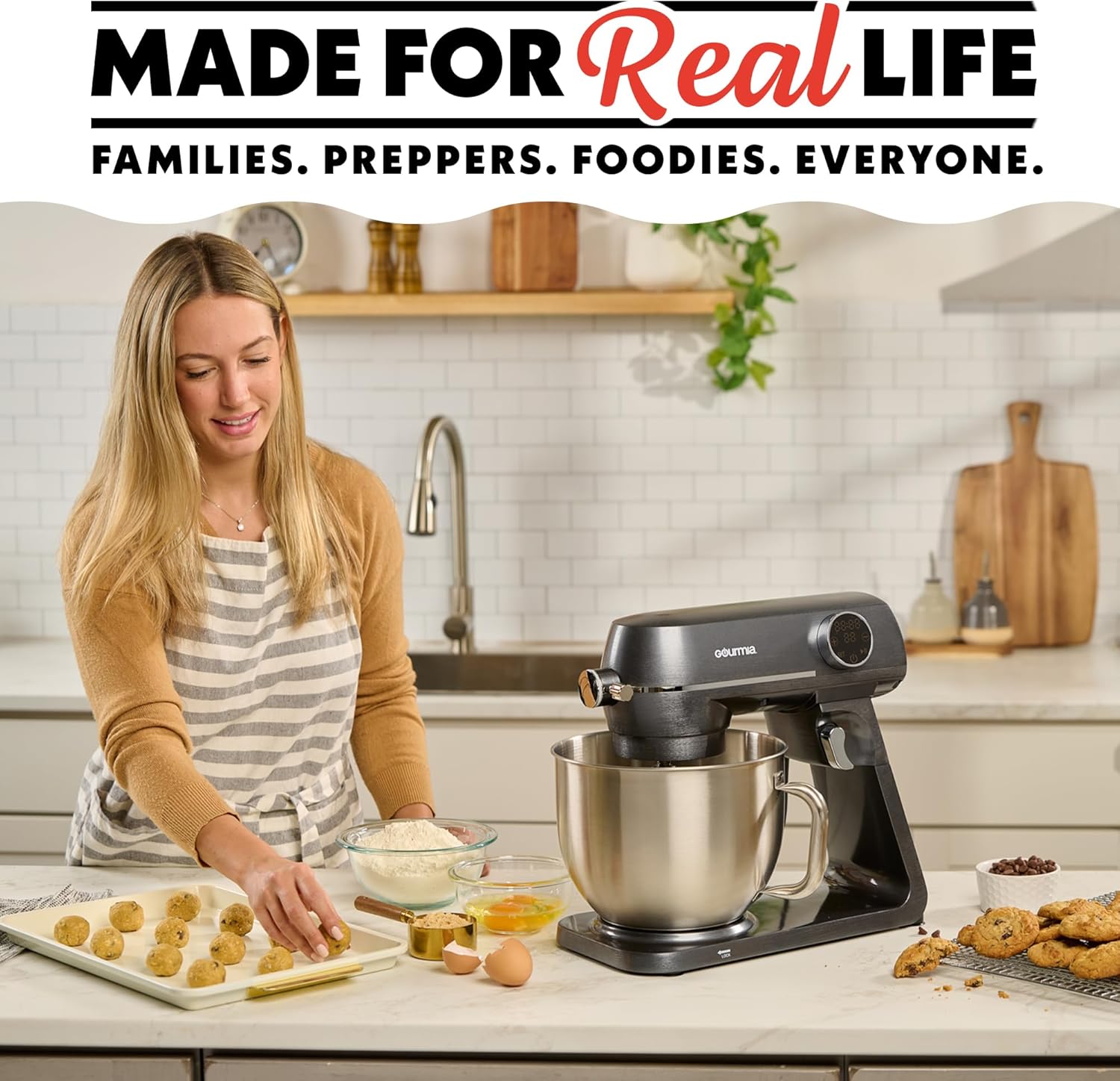 – Large 7-quart stainless steel bowl for bigger batches